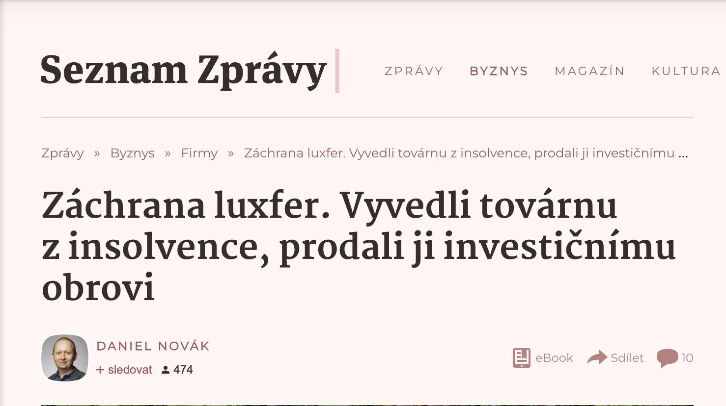 Lukáš Zrůst k transakci dodal: „Ve skupině Progresus tento okamžik vnímáme jako skutečný milník. Po akvizici společnosti Seves Glass Block se nám podařilo splnit hlavní úkol: stabilizovat firmu a nastavit špičkovou, vysoce efektivní výrobu." (ČeskéNoviny.cz)